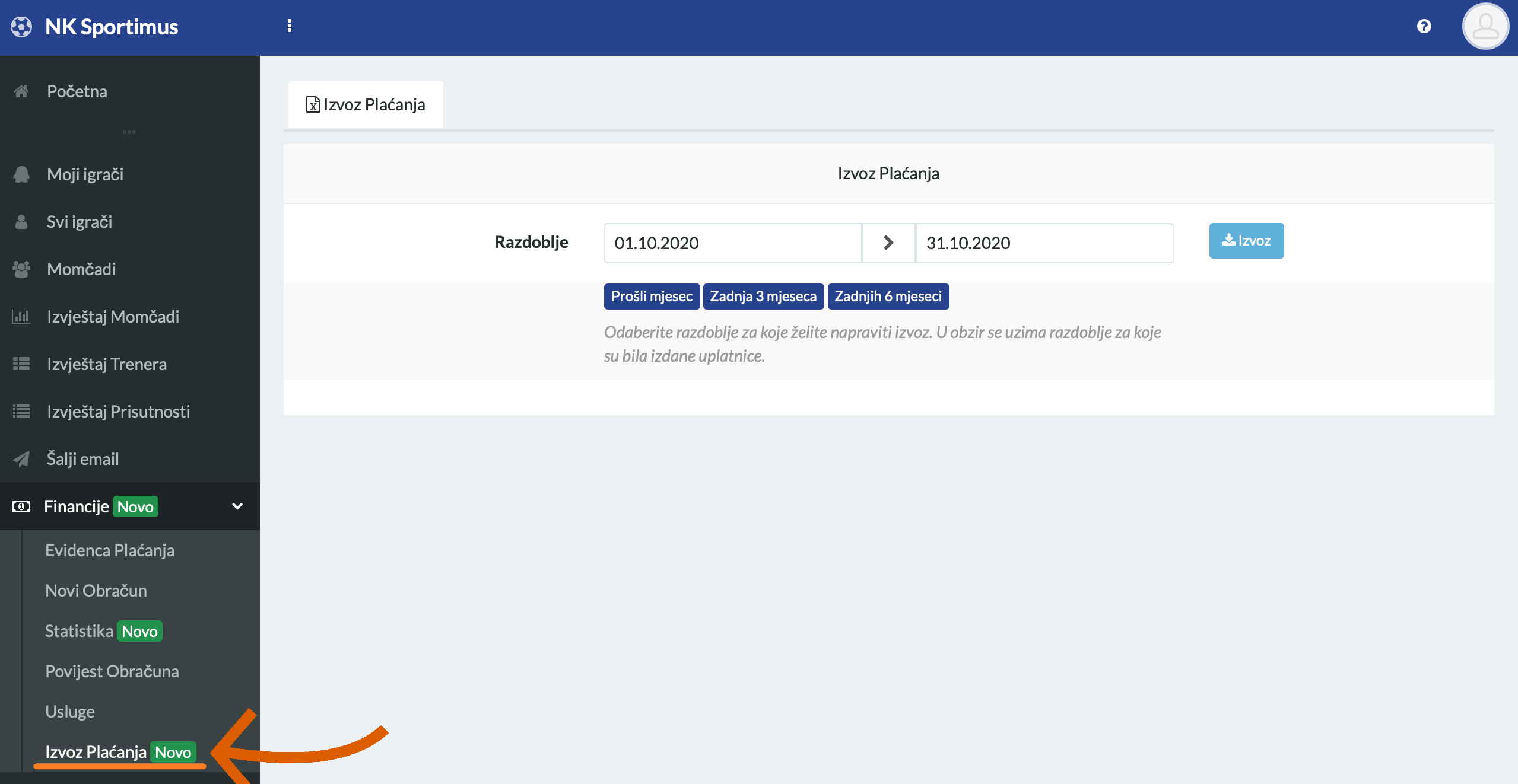 Za vlastite potrebe ili potrebe računovodstva možete poslati izvoze plaćanja u Excel formatu.